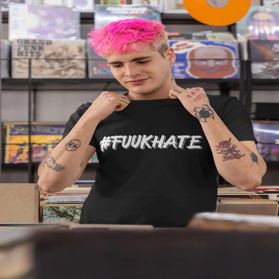 The #FUUKHATE men’s crew neck t-shirt brings sharp contrast to a powerful message. With a soft, classic fit and an unapologetic tone, this tee is made for men who speak out against hate and live with intention. Whether you’re standing up, showing up, or just done with the hate, this tee makes your stance clear. #FUUKHATE—because silence fuels the problem.
