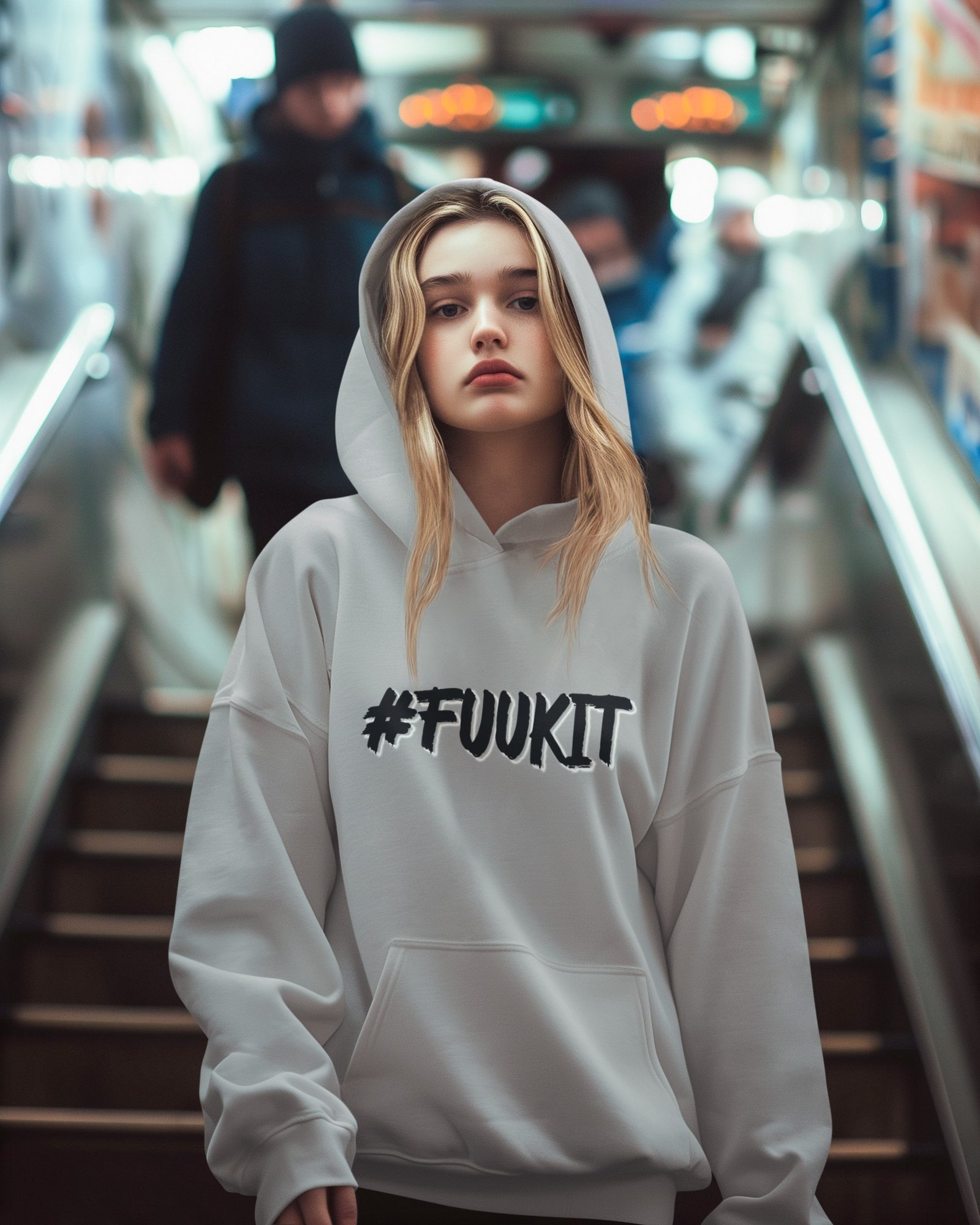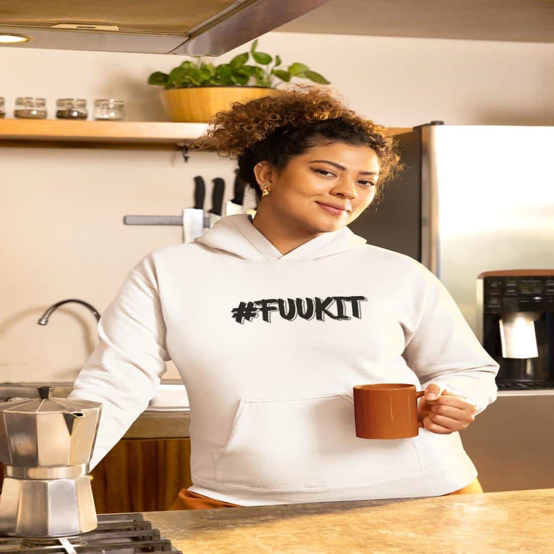 The #FUUKIT women’s hoodie is all about comfort with a side of “I’m done.” With cozy fleece, a relaxed fit, and a fearless message, it’s made for those days when you’ve had enough. Whether you’re setting boundaries or burning bridges, this hoodie has your back. Soft on the outside. Savage underneath. FUUK it—and keep going.