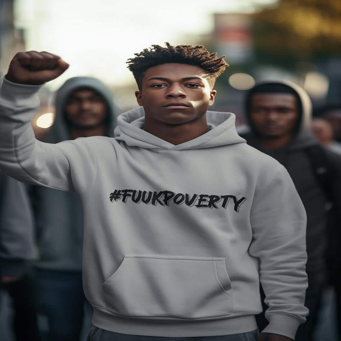 The #FUUKPOVERTY men’s hoodie blends comfort with conviction. Made for those who lead by example, this hoodie features ultra-soft fleece, a relaxed fit, and a message that hits hard. Whether you’re on the streets, at an event, or just making moves, this hoodie speaks for you: poverty isn’t just wrong—it’s something we’re done with. Wear your mission.