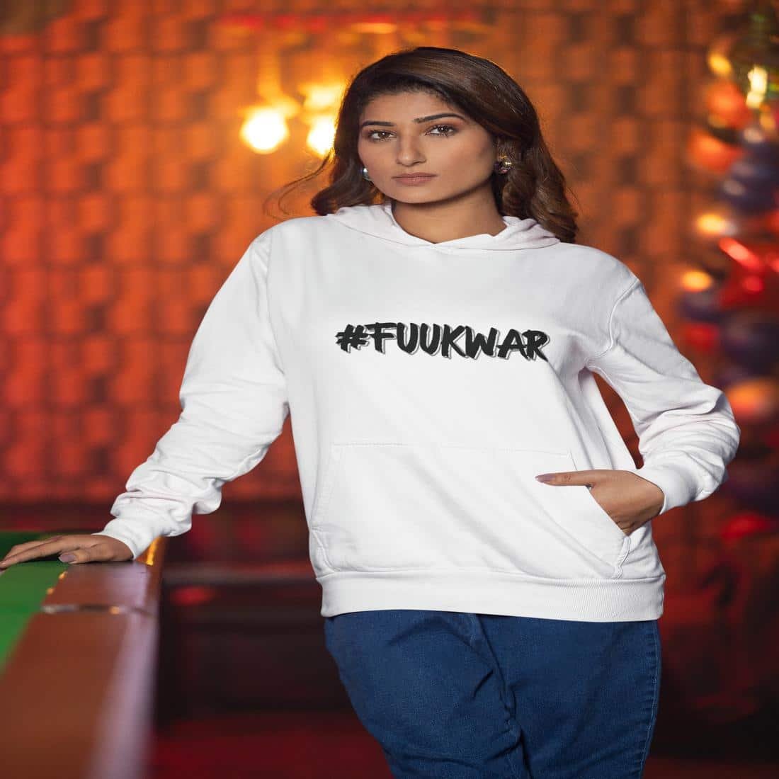 The #FUUKWAR women’s hoodie wraps you in warmth while delivering a powerful message. Designed for those who reject war and fight for peace, this hoodie features cozy fleece, a relaxed fit, and a voice that won’t be silenced. Whether you’re rallying or reflecting, it’s your daily uniform for standing up and standing firm. Peace is power—wear it loud.